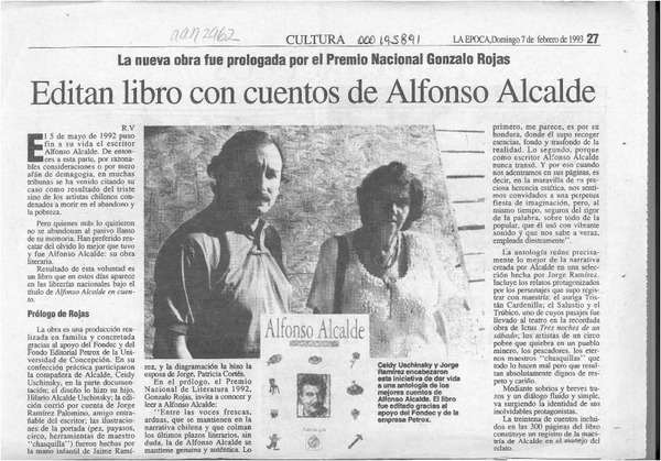 Editan libro con cuentos de Alfonso Alcalde [artículo] R. V.