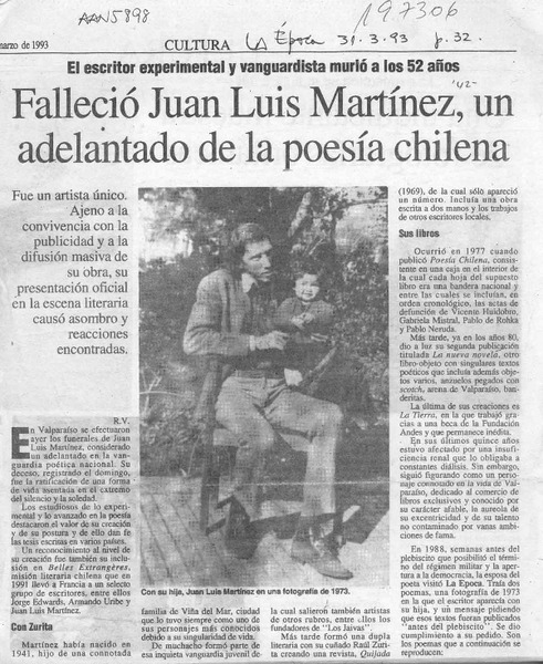 Falleció Juan Luis Martínez, un adelantado de la poesía chilena [artículo] R. V.