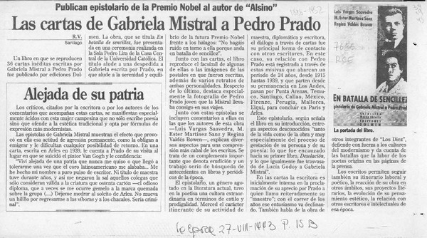 Las cartas de Gabriela Mistral a Pedro Prado [artículo] R. V.