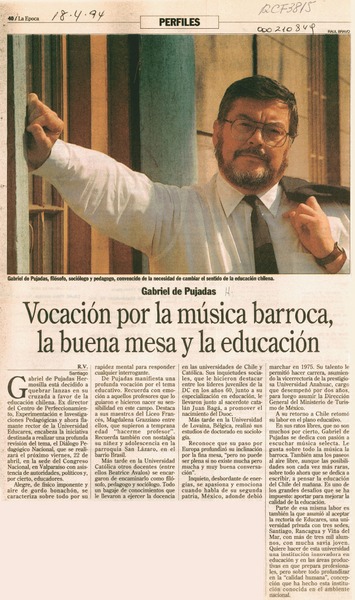 Vocación por la música barroca, la buena mesa y la educación [artículo] R. V.