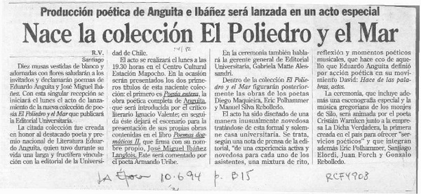 Nace la colección El Poliedro y el Mar [artículo] R. V.