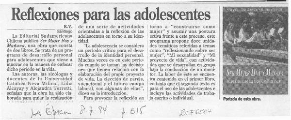 Reflexiones para las adolescentes [artículo] R. V.
