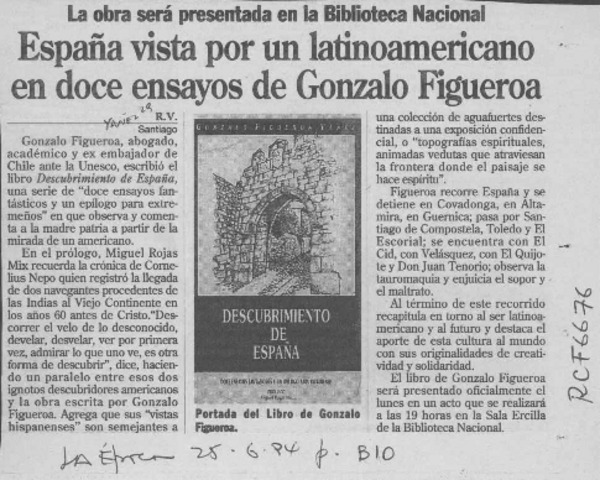 España vista por un latinoamericano en doce ensayos de Gonzalo Figueroa [artículo] R. V.