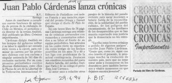 Juan Pablo Cárdenas lanza crónicas [artículo] R. V.