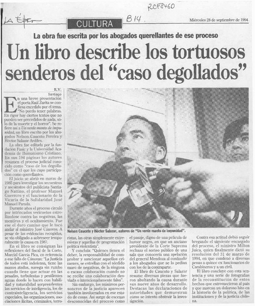 Un libro describe los tortuosos senderos del "caso degollados" [artículo] R. V.