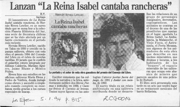 Lanzan "La Reina Isabel cantaba rancheras" [artículo] R. V.