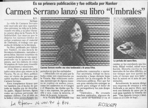 Carmen Serrano lanzó su libro "Umbrales" [artículo] R. V.