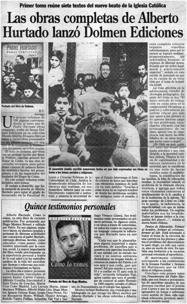 Las obras completas de Alberto Hurtado lanzó Dolmen Ediciones [artículo] R. V.