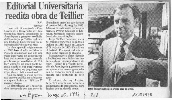 Editorial Universitaria reedita obra de Jorge Teillier [artículo] R. V.
