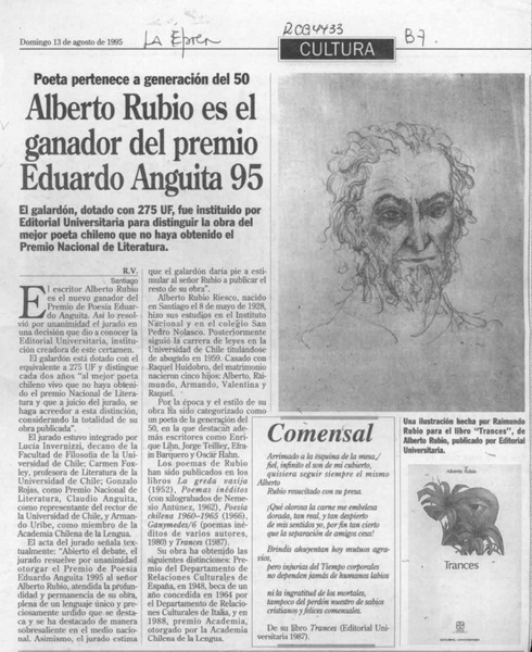 Alberto Rubio es el ganador del premio Eduardo Anguita 95 [artículo] R. V.
