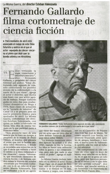 Fernando Gallardo filma cortometraje de ciencia ficción [artículo] R.V.
