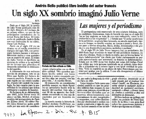 Un Siglo XX sombrió imaginó Julio Verne ANdrés Bello publicó libro inédito del autor francés [artículo] : R.V.