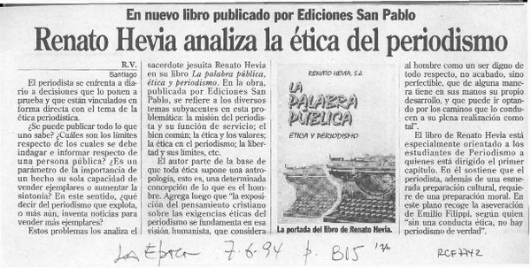 Renato Hevia analiza la ética del periodismo [artículo] R. V.