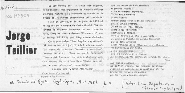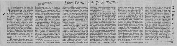 Libro póstumo de Jorge Teillier [artículo] F. V.