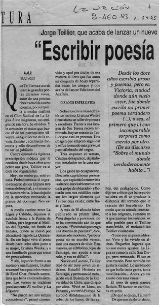 "Escribir poesía es evitar lo que uno ha pensado" [artículo] A. M. R.