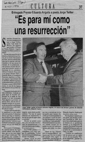 Poeta Jorge Teillier obtuvo premio "Eduardo Anguita" [artículo].