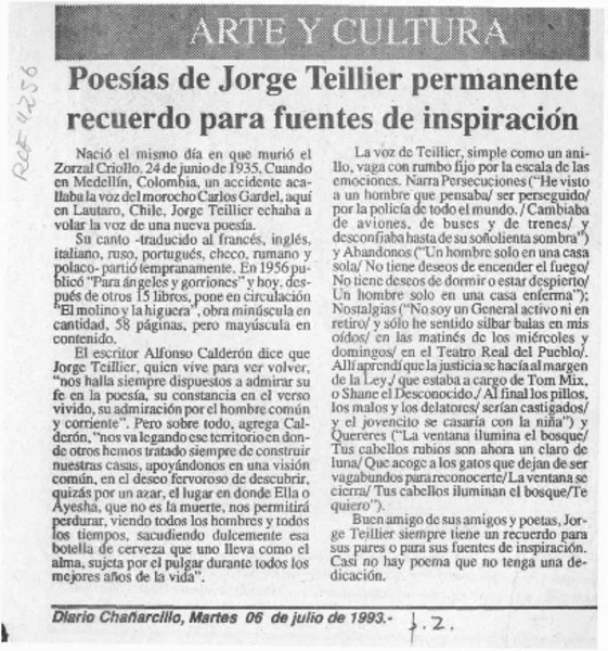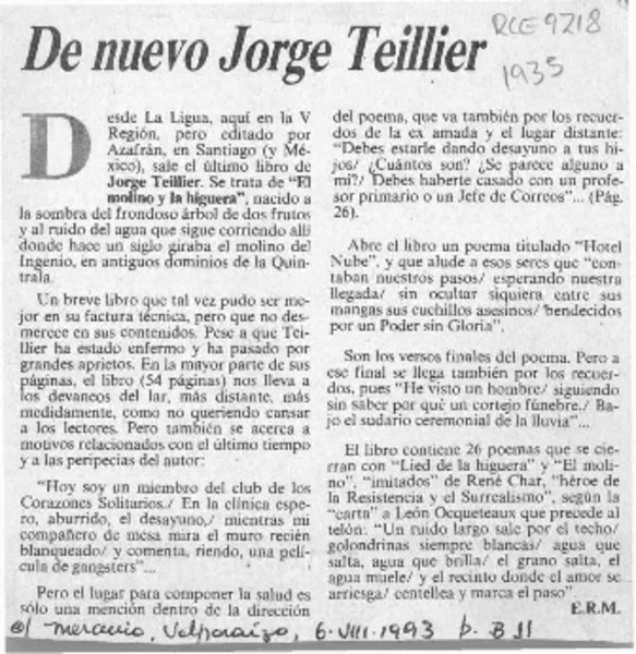De nuevo Jorge Teillier [artículo] E. R. M.