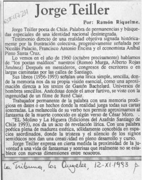 Jorge Teillier [artículo] Ramón Díaz Eterovic.