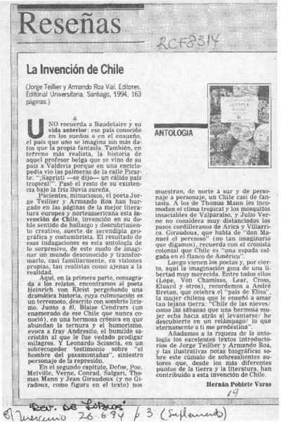La invención de Chile [artículo] Hernán Poblete Varas.