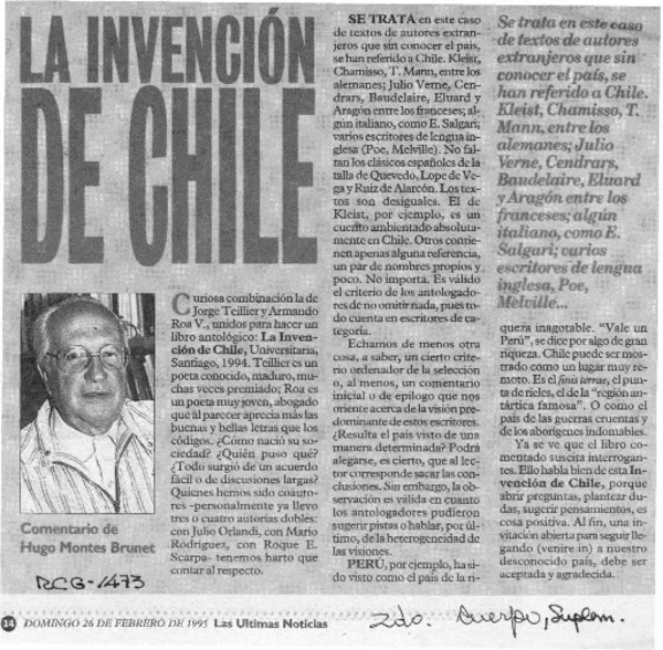 La invención de Chile [artículo] Hugo Montes Brunet.