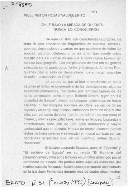 Chile bajo la mirada de quienes nunca lo conocieron [artículo] Wellington Rojas Valdebenito.