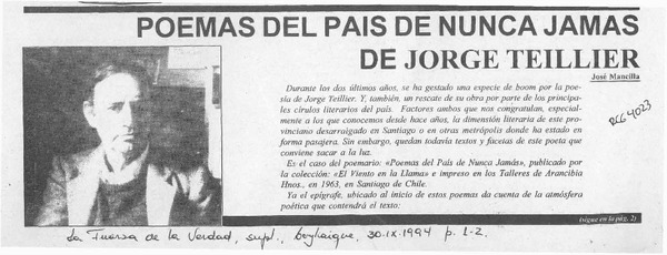 Poemas del país de nunca jamás, de Jorge Teillier [artículo] José Mancilla.