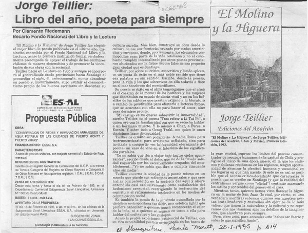 Jorge Teillier, libro del año, poeta para siempre [artículo] Clemente Riedemann.