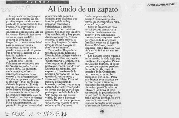 Al fondo de un zapato [artículo] Jorge Montealegre.