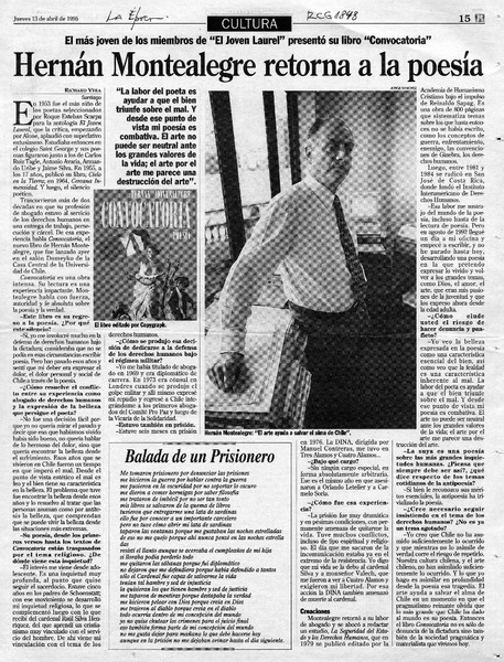 Hernán Montealegre retorna a la poesía [artículo] Richard Vera.