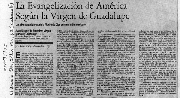La Evangelización de América según la Virgen de Guadalupe [artículo] Luis Vargas Saavedra.