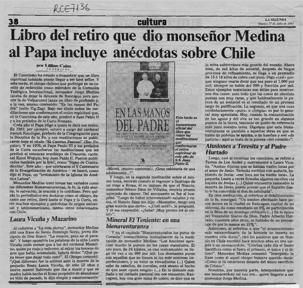 Libro del retiro que dio monseñor Medina al Papa incluye anécdotas sobre Chile [artículo] Lillian Calm.