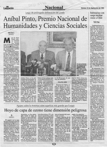 Aníbal Pinto ganó Premio Nacional de Humanidades y Ciencias Sociales [artículo] Juan Pablo Ernst.