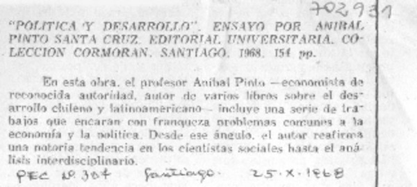 Autores chilenos - Pinto, Aníbal - Política y desarrollo