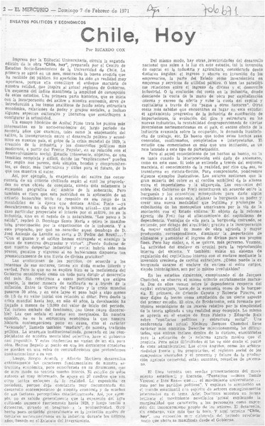 Chile, hoy [artículo] Ricardo Cox.