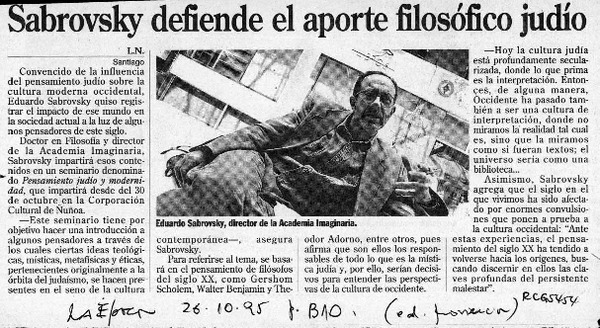 SAbrovsky defiende el aporte filosófico judío [artículo] L. N.