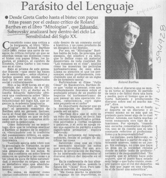 Parásito del lenguaje [artículo] Yenny Cáceres