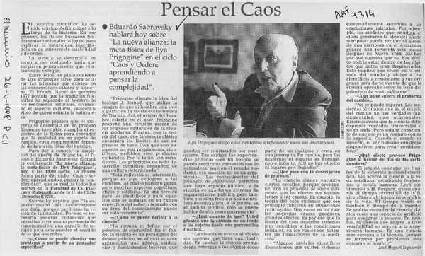 Pensar el caos [artículo] José Miguel Izquierdo.