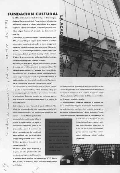 Autores chilenos - Entrevistas - Parra, Marco Antonio de la - Sabrovsky J., Eduardo