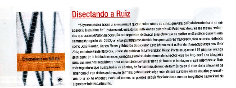 Disectando a Ruíz [artículo] Christine Buci-Glucksmann, ... [et.al]