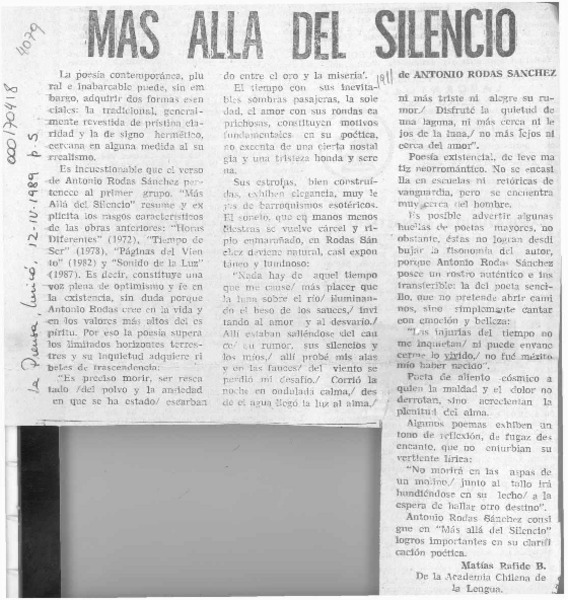 "Más allá del silencio" [artículo] Matías Rafide B.