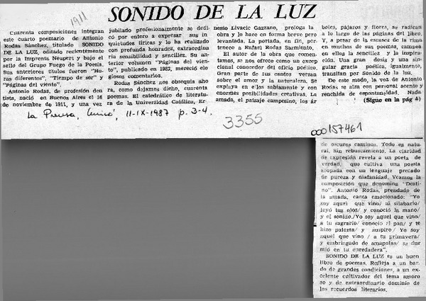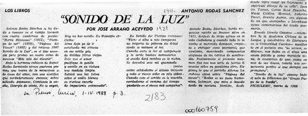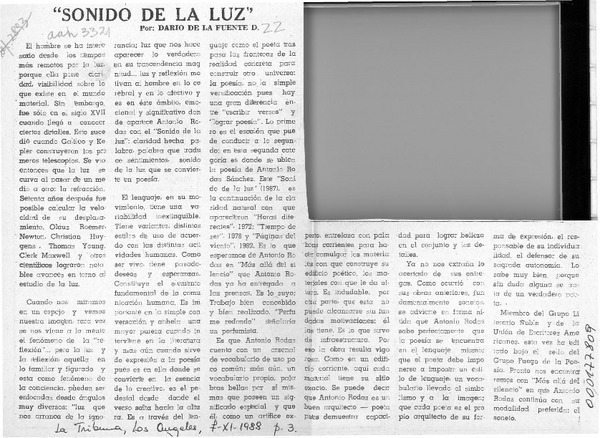 "Sonido de la luz" de Antonio Rodas S. [artículo] Darío de la Fuente.