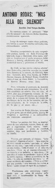 Antonio Rodas, "Más allá del silencio" [artículo] José Vargas Badilla.
