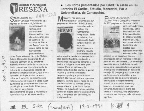 Autores chilenos - Autores españoles - CARVAJAL, VICTOR - SAKANUSOYIN - CUNQUEIRO, ALVARO - AÑO DEL COMETA