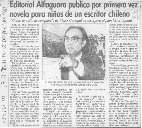 Editorial Alfaguara publica por primera vez novela para niños de un escritor chileno [artículo].