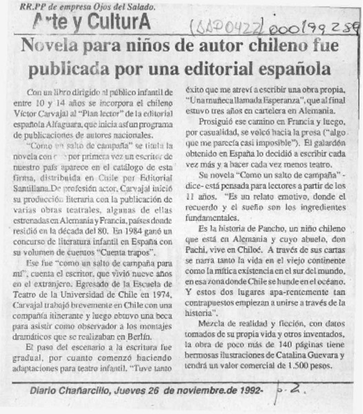 Novela para niños de autor chileno fue publicada por una editorial española [artículo].
