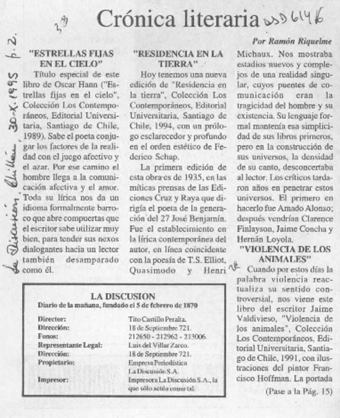 Poesía de aquí y de allá [artículo] Marino Muñoz Lagos.