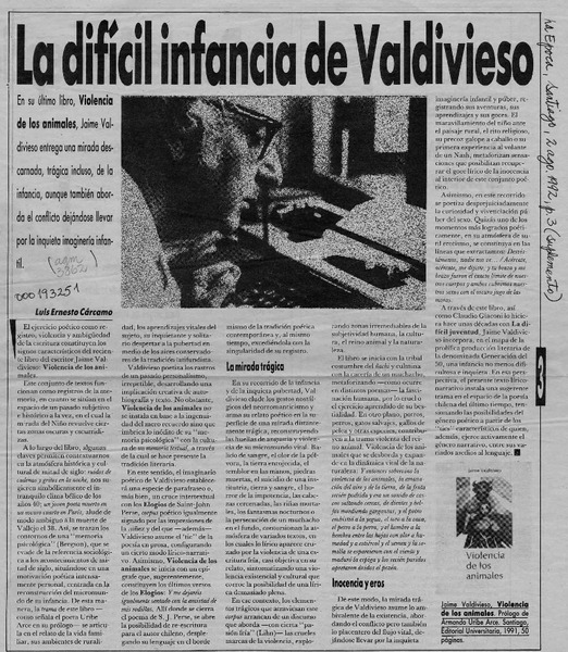 La difícil infancia de Valdivieso [artículo] Luis Ernesto Cárcamo.