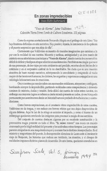 En zonas impredecibles [artículo] Juan Pablo Sutherland.