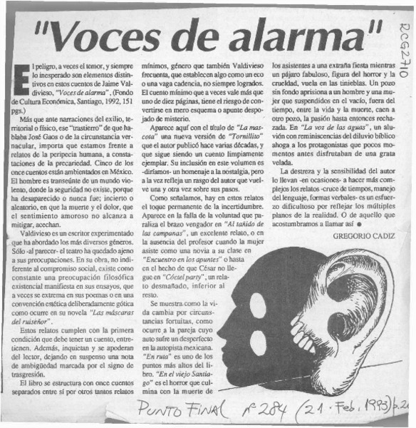 "Voces de alarma" [artículo] Gregorio Cádiz.