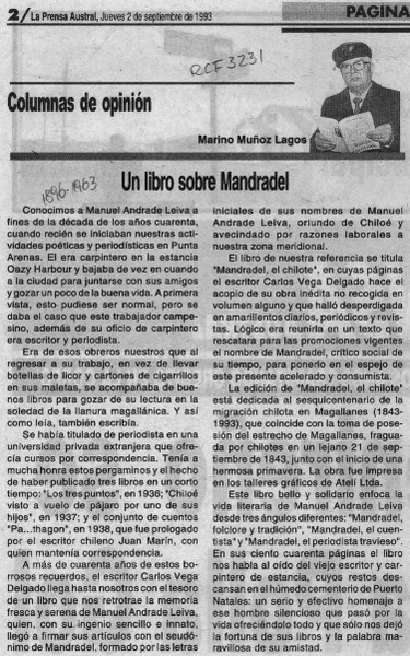 Un libro sobre Mandradel [artículo] Marino Muñoz Lagos.